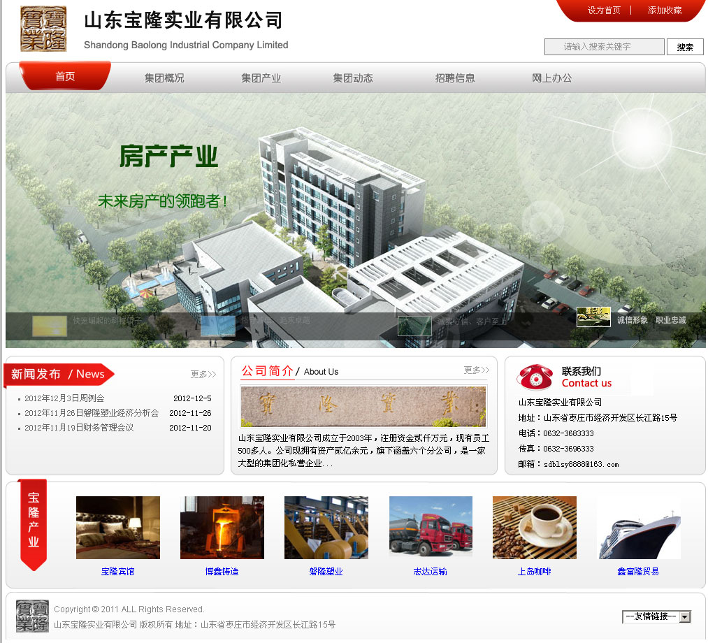 棗莊網站制作:山東寶隆實業有限公司成立于2003年,公司注冊資本金貳仟萬元,現有職工500余人。公司現擁有資產叁億余元,旗下涵蓋六個分公司。 公司總部位于山東省棗莊市工業園長江路15號,地處省級經濟開發區,南臨運河,北臨京福高速公路,西距京滬高鐵,距著名的旅游景區臺兒莊運河古城、微山湖濕地公園均40公里。地理位置優越,交通便利,環境優美。 公司是一家以銷售煤炭、石膏、水泥、熟料等建筑材料為主營業務,以生產和經營耐磨材料、塑編袋、物流運輸、化工原料、地熱材料為輔營業務,同時經營房地產行業的綜合性集團化私營企業。公司自成立以來,經營業績穩定提升,與中國聯合水泥集團有限公司(CUCC)、棗莊礦業集團等多家大型企業建立了長期穩定的戰略合作伙伴關系。 寶隆實業始終秉承著“恪守誠信,追求卓越”的經營理念,以“誠實守信、客戶至上”為營銷宗旨,遵循“平等互利、合作共贏”的原則;以“樹寶隆形象,創寶隆品牌”為目標,艱苦奮斗、務實創新,公司在激烈的市場競爭中表現出巨大的進取心,煥發出蓬勃生機,用誠信和實力創造寶隆曠世偉業,這是寶隆人不懈的追求! 2011年,寶隆實業已走過九年的發展歷程,九年,在漫長的歷史長河中只是短暫的瞬間,但對于寶隆人來說,這是一段永載史冊、奮發有為、成就百年基業的創業歷程,寶隆人用青春、汗水、和智慧譜寫了一曲華彩樂章。九年的櫛風沐雨,九年春華秋實;九載磨礪拼搏,九載碩果累。九年的堅守、堅韌、堅持,所有的積累,所有的沉淀,讓寶隆實業增強了實力和能力,讓寶隆人增添了勇氣和底氣,寶隆實業在激烈的市場競爭中敢于亮劍,敢于向世界一流巔峰企業發起挑戰,這是全體寶隆人時刻保持著的、永遠都不可磨滅的寶隆意志。 今天,寶隆人在此收拾好往日的榮耀。明天,寶隆人又將迎著朝陽,帶著堅毅的目光,踏上任重道遠的征程,朝著下一個光輝楊帆遠航…… |