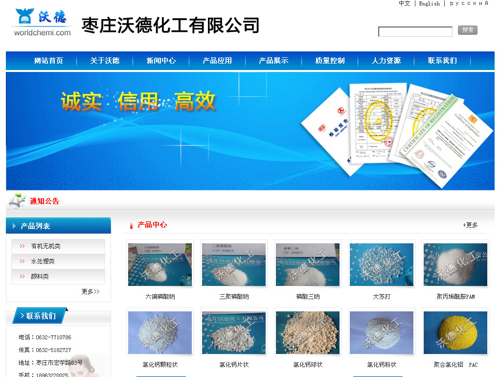 [棗莊網站建設項目]棗莊沃德化工有限公司