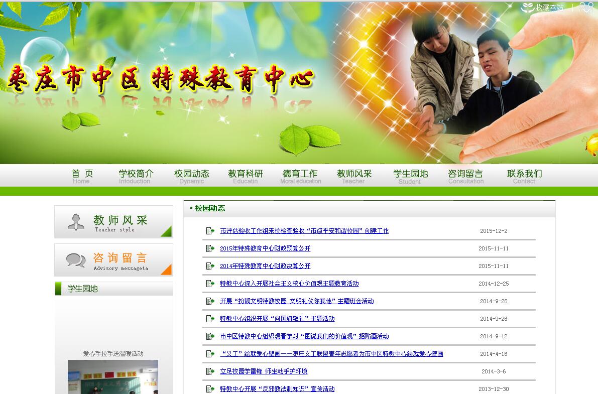 棗莊市市中區特教中心是1992年秋由原車站街小學改建而成,為適應學校發展,2010年區政府投資1200萬元將學校搬遷至于此,新校占地9.2畝,建筑面積5960平方米。學校是一所以招生智力殘疾兒童少年為主,兼顧招收腦癱和自閉癥兒童少年的學校。學校現有9個教學班,在校學生90人,教職工33人,全部具備合格學歷。在各級政府的關懷支持下,學校的辦學水平逐年提高,97年通過特殊教育學校首批省級規范化學校,學校先后被評為“全國特奧先進單位”,“全國特奧體育道德風尚獎” ,“省殘疾人之家”“殘疾人康復先進單位。市、區特殊教育先進單位。市中區受到國家教委、殘聯等四部委通報表彰,榮獲山東省特教先進區,國家特教先進區。 |